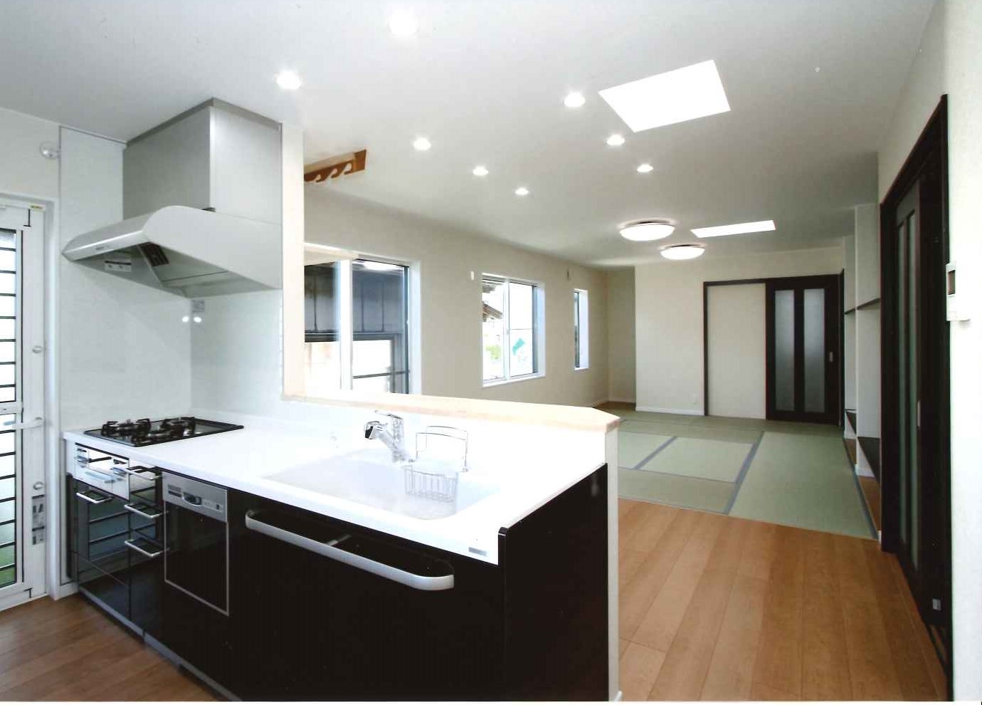 完成した、リビングの床は、畳にして今までの生活様式とあまり変わらないようにし、キッチンから奥様が、子供たちの様子を見守られるようにし、他にも、間取りだけではなく、床、壁、天井の断熱材とサッシも断熱の良いペアーガラス内側樹脂サッシにいれかえました。この様な工事もご提案させて頂きますので、リフォームのお考えのある方はお気軽にお申し付けください。