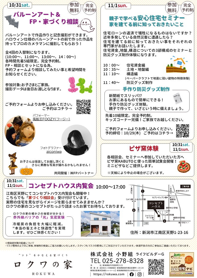 10月31日に開催される「ロクワの家オータムフェア」にて、ハロウィンにちなんだバルーンアート開催いたします。
