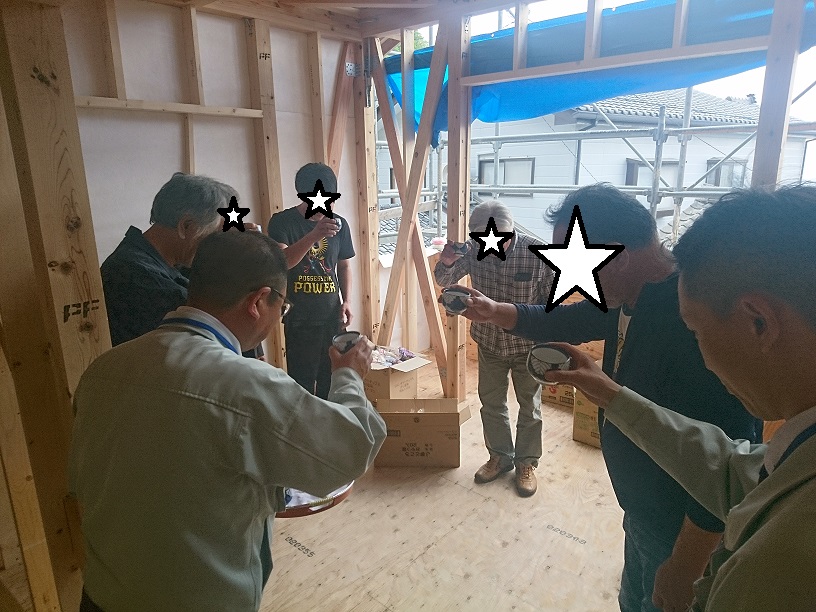 ご近所様のご協力もあり、楽しい上棟式となりました。
