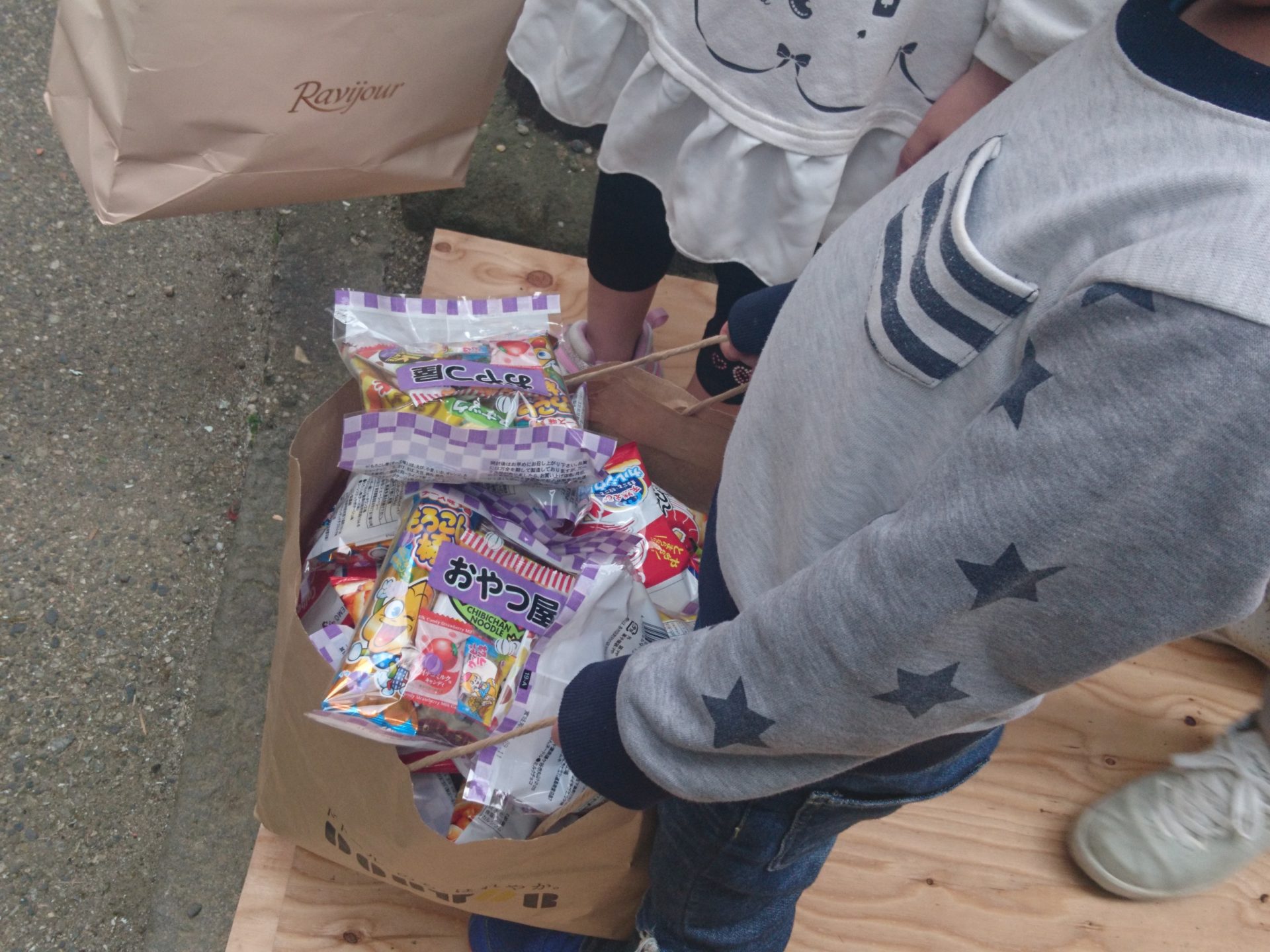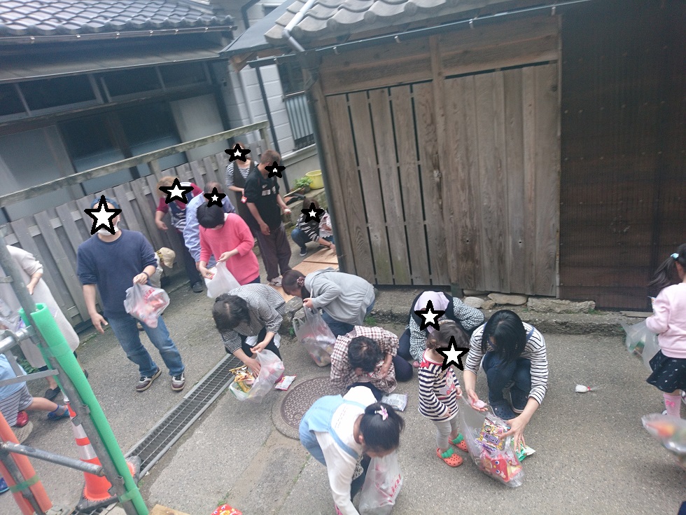 乾杯のあと、菓子撒きスタート!!!