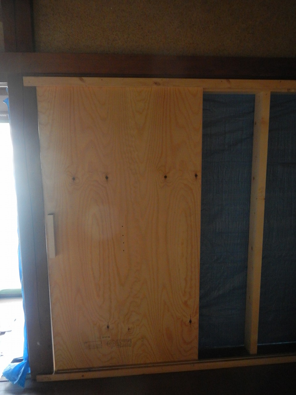また、笹口棟梁が仮設の引戸を設置してくれました。