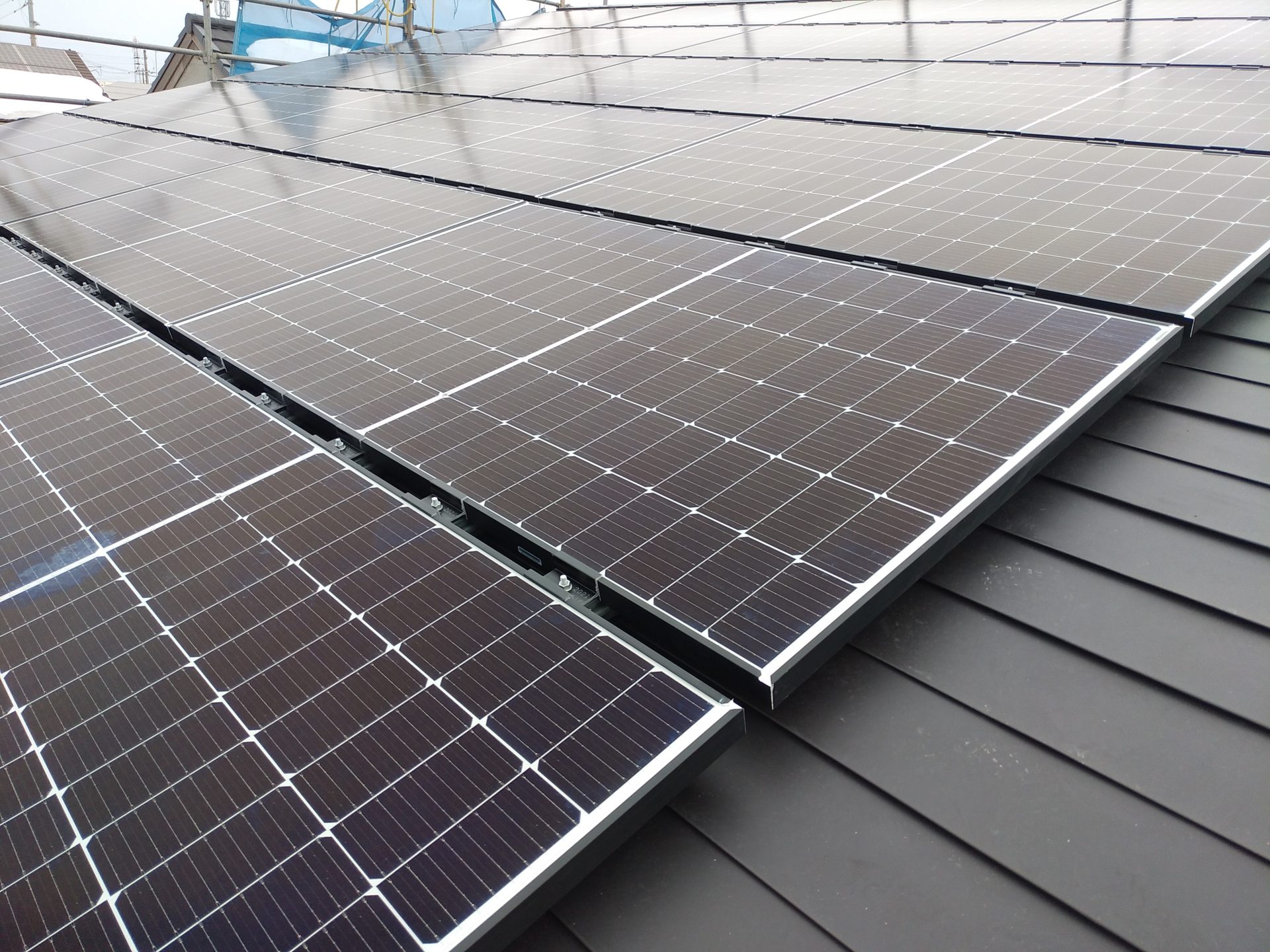 新築の現場にて太陽光パネルを屋根に設置しました!