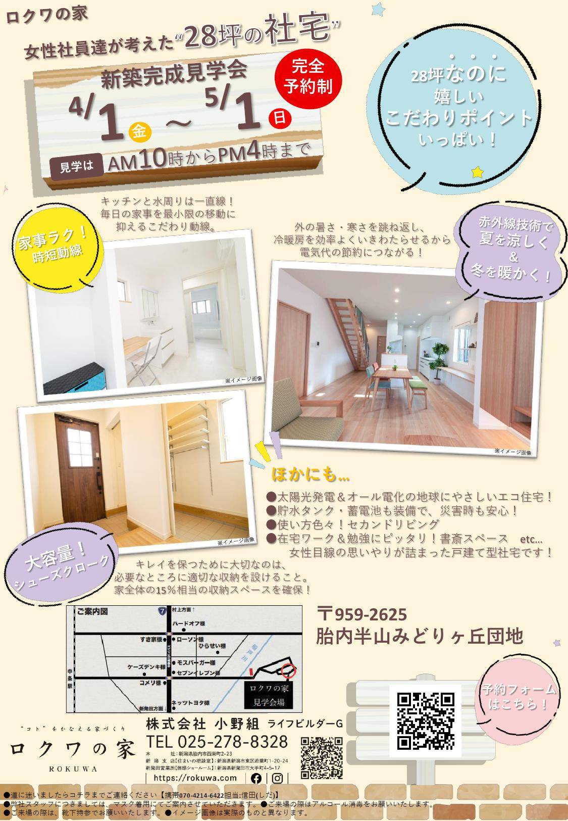 4月1日から約一か月間、胎内市半山にて『28坪の社宅』見学会開催中!
