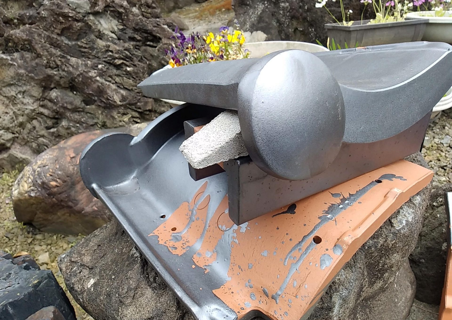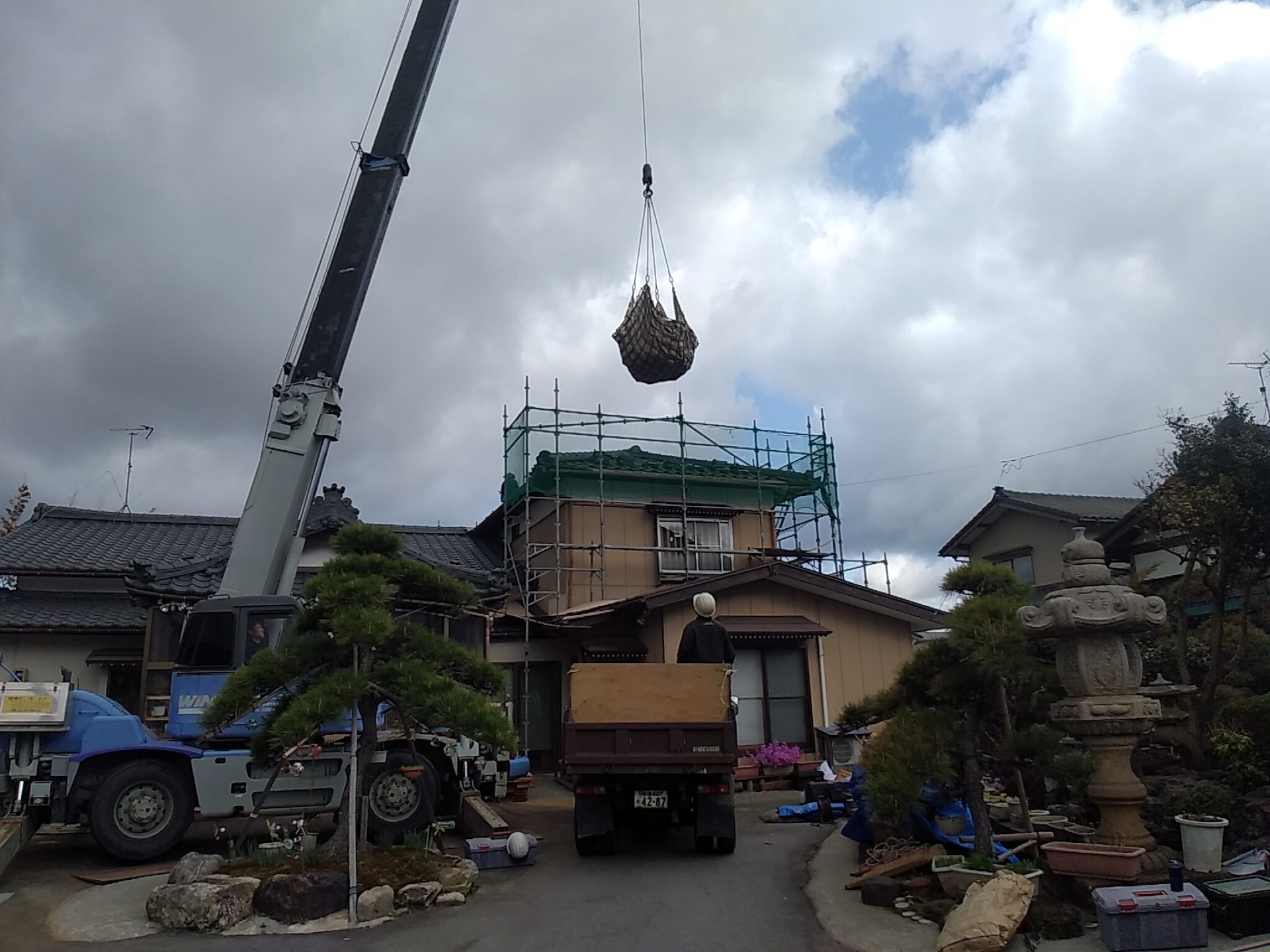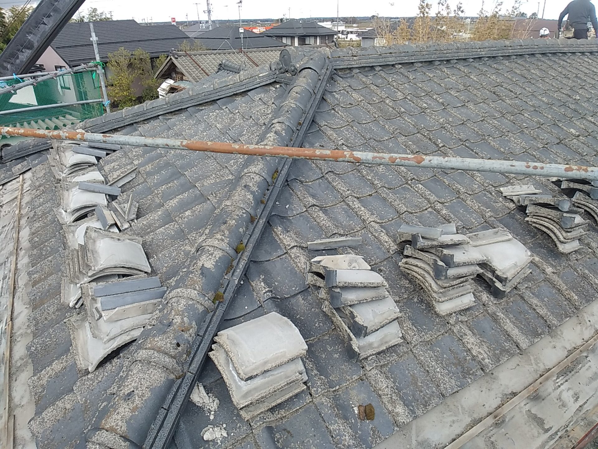 古くなったセメント瓦を下して三州の焼瓦に上げ変をしています。