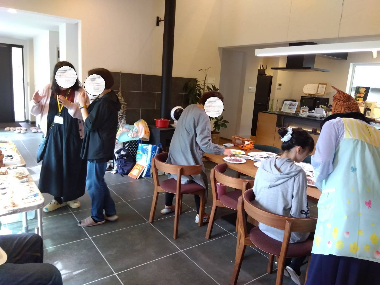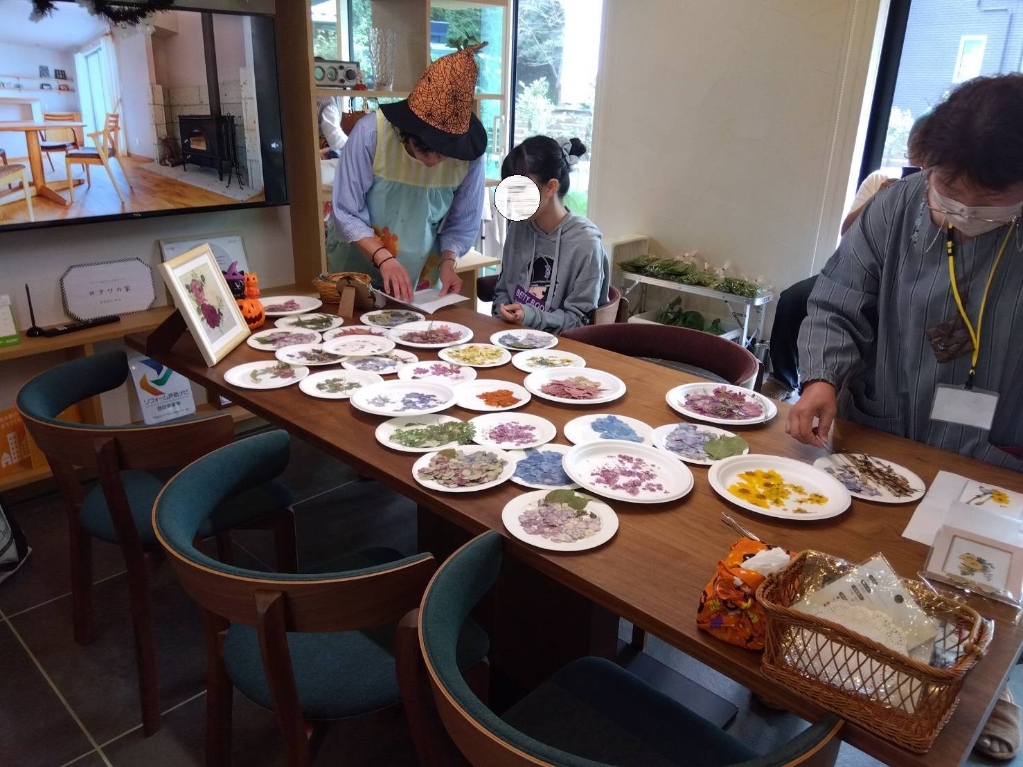 中央のダイニングテーブルでは押し花を使ったワークショップも🌷