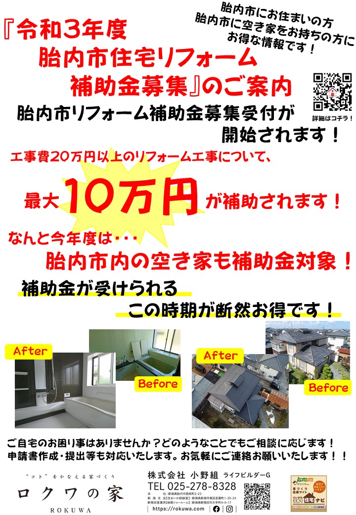 令和3年度:胎内市リフォーム補助金