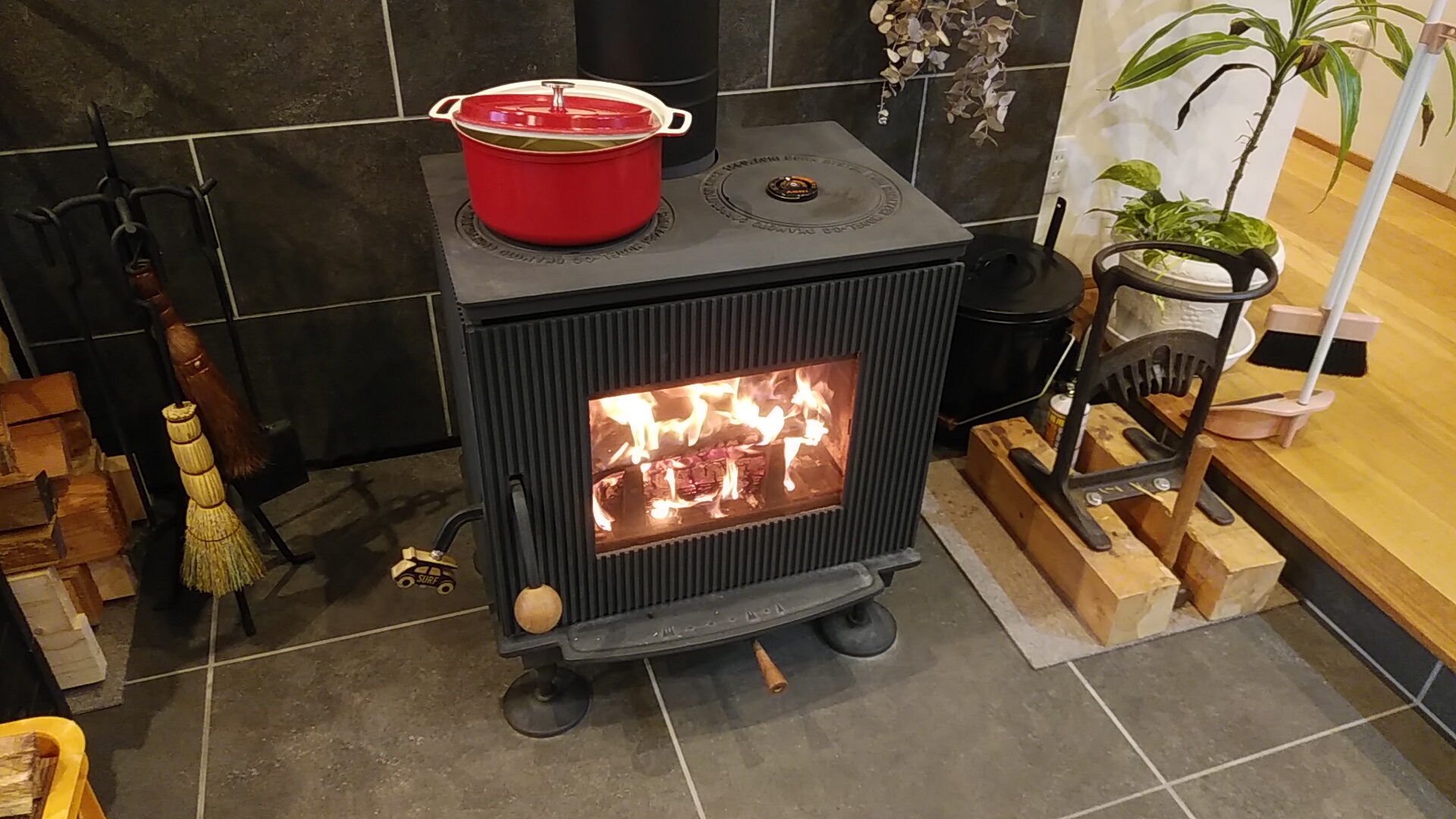 ゆらめく炎を見ていると、あまりに心地良くて薪ストーブの前から離れ難いのですが・・・・^^;;