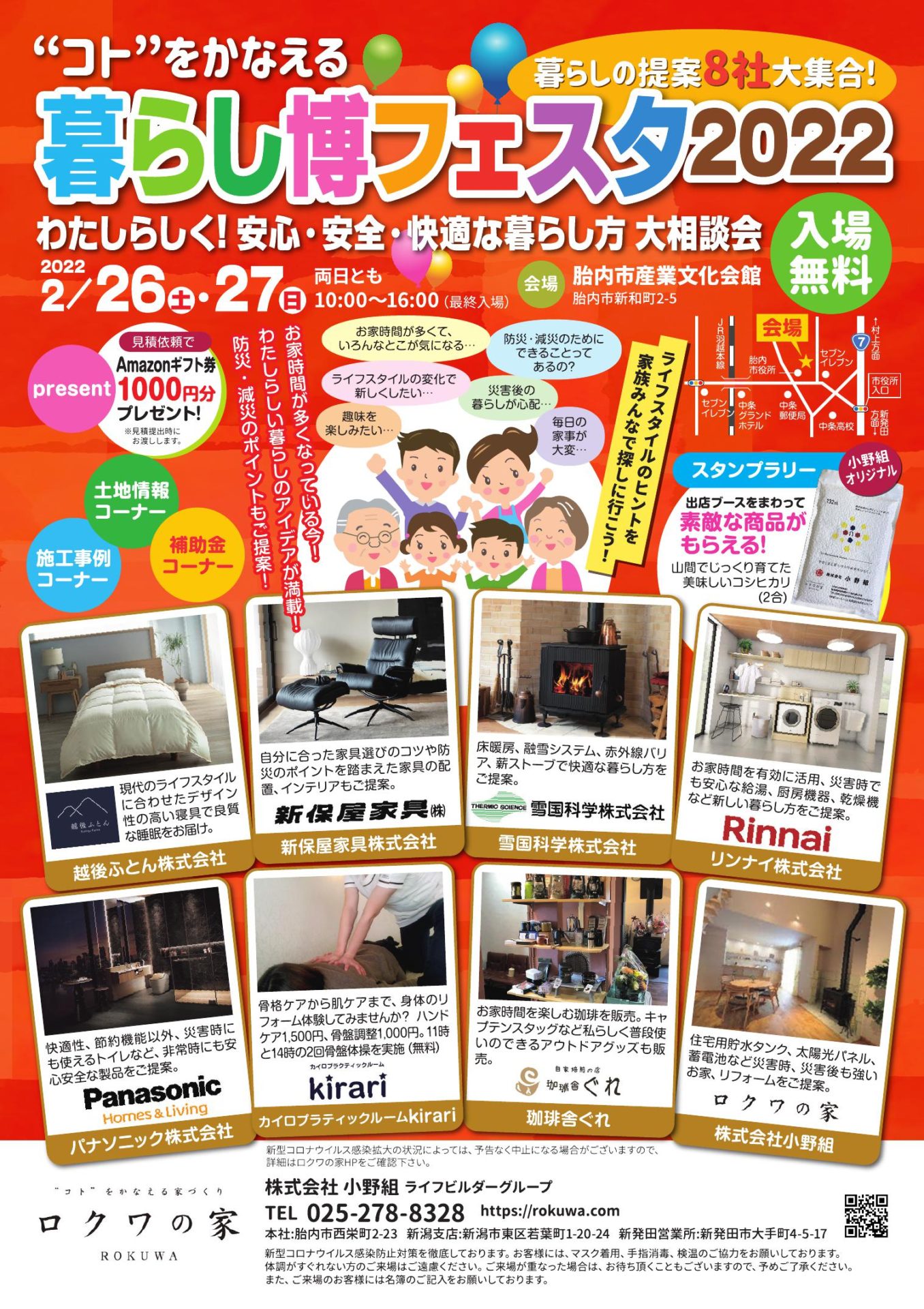 【終了】2/26(土)-27(日)暮らし博フェスタ2022 in 胎内市産業文化会館開催!