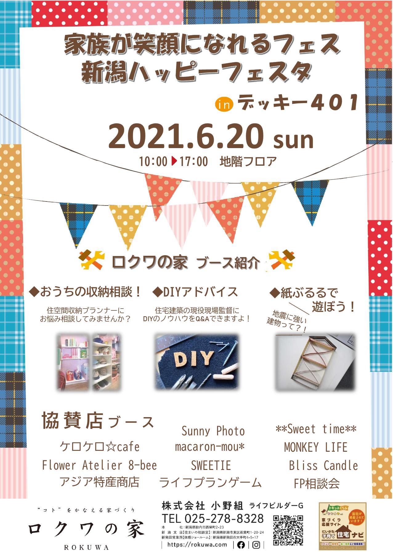 6月20日(日)10:00~17:00 デッキー401にて「新潟ハッピーフェスタ」を開催いたします。※協賛店ブースはチラシをご覧ください。