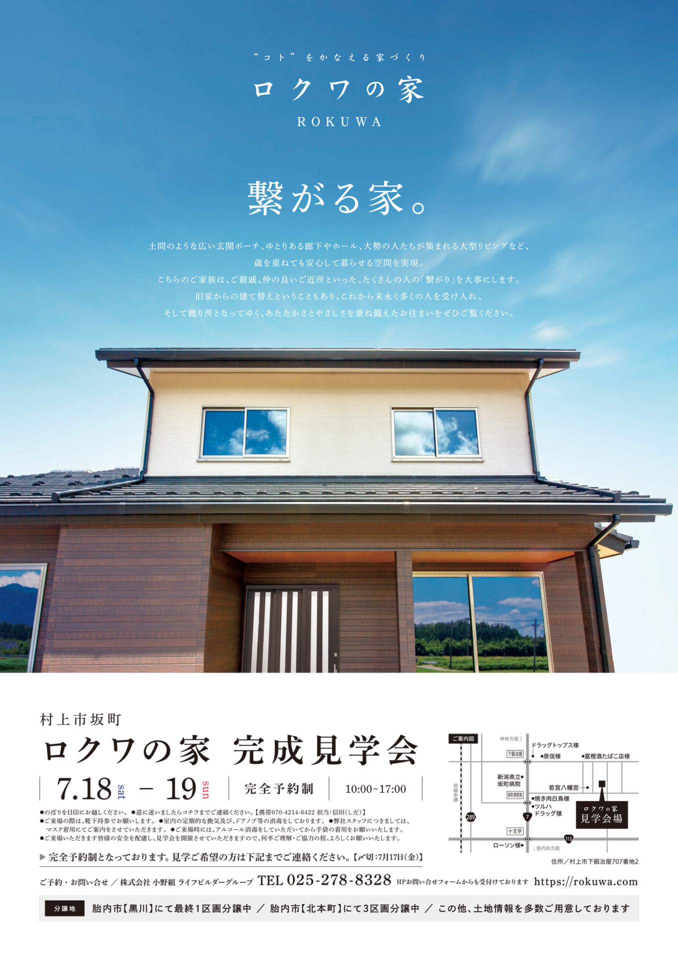 【終了】7/18(土)~7/19(日)完成見学会(村上市下鍜冶屋)のご案内!