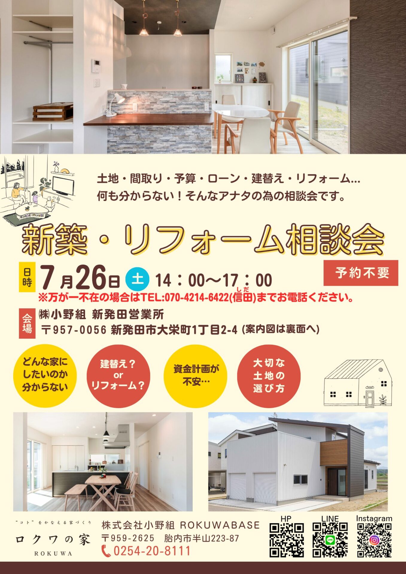 日時:7月26日(土)~18(金)14:00~17:00場所:㈱小野組 新発田営業所 新発田市大栄町1-2-4お問合せ:HPお問合せリンクまたは0254-20-8111までお問合せ下さい